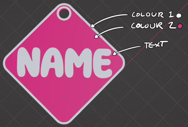 A sturdy, customizable 3D printed tag made to order. Fully unique and customizable, just for you.Â