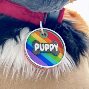 Please specify the flag type, name you would like on the tag and ring colour (pink, red, orange, yellow, blue, green, purple, clear) you would like in the notes!